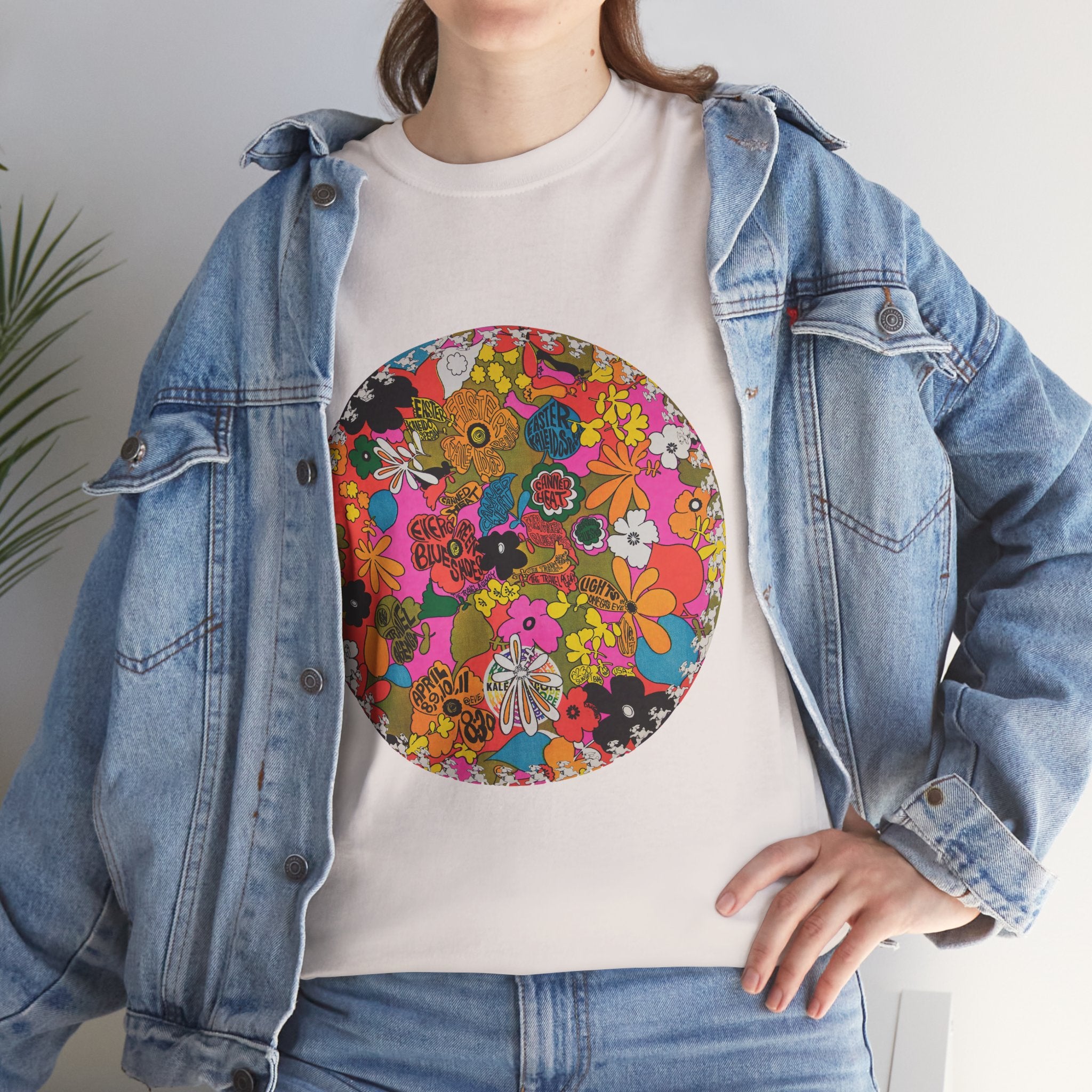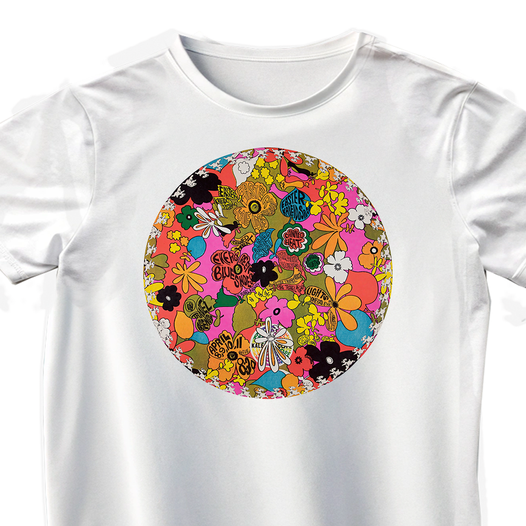 HIPPY CIRCLE FLOWER TEE Made fFrom Vintage 60s Concert Posters